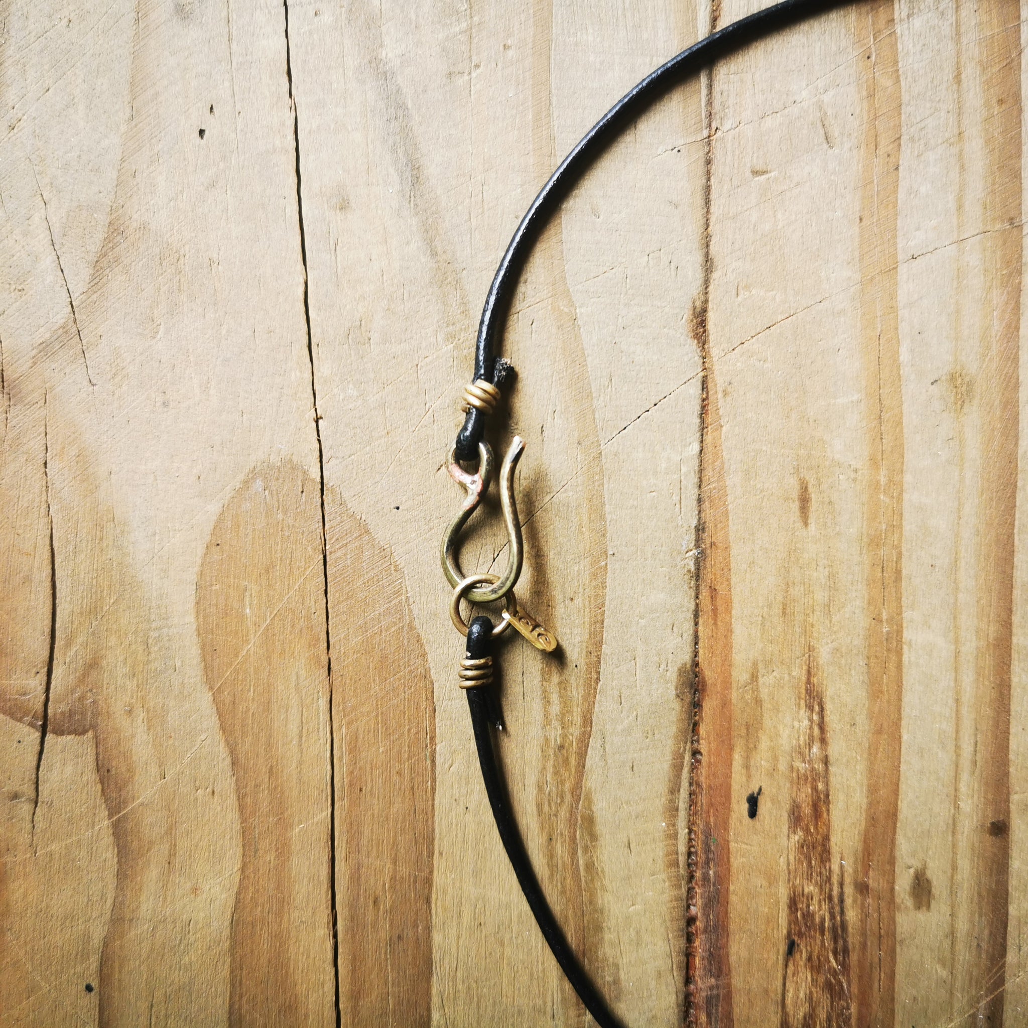 Pendant length: 4cm | Pendant weight: 5g | includes 45cm leather cord with handmade brass clasp.
